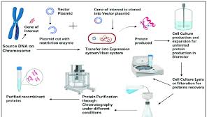 Recombinant expression involves inserting a gene of interest into a plasmid vector, which is then introduced into a host organism commonly E. coli.